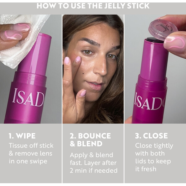 IsaDora The Lip & Cheek Tint Cooling Jelly Stick er en avkjølende og spenstig geléaktig leppe- og kinnfarge med 99% naturlige ingredienser som gir en langvarig, skjør farge og en silkemyk følelse på huden.
