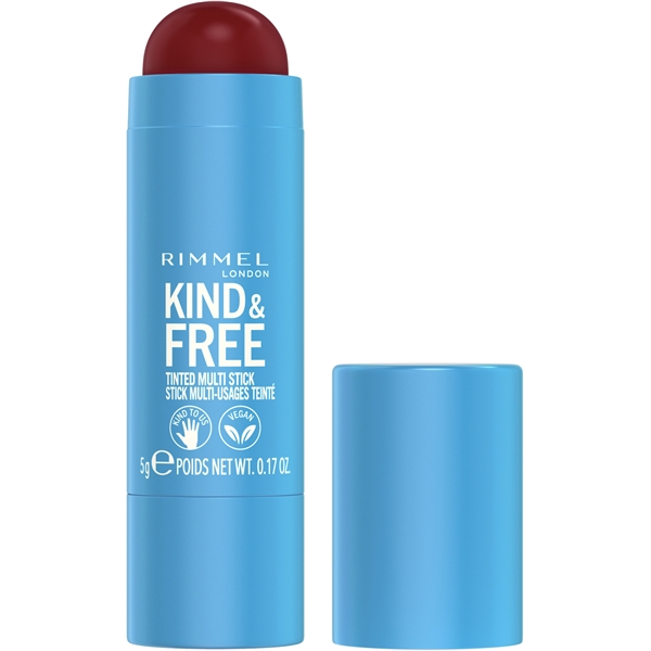 Rimmel Kind & Gratis Multi Stick gir umiddelbar fuktighetsgivende og byggbar farge. Kan brukes som kremblush på kinnene eller som leppestift på leppene. Nærende og fuktighetsgivende formel med hudpleieingredienser.