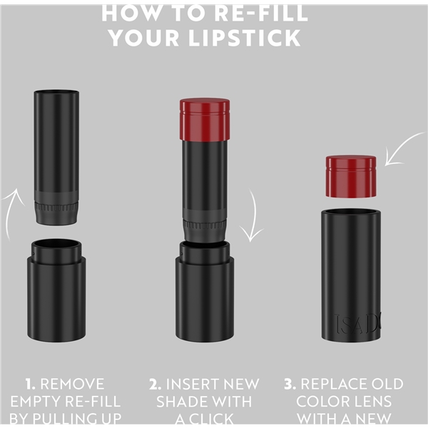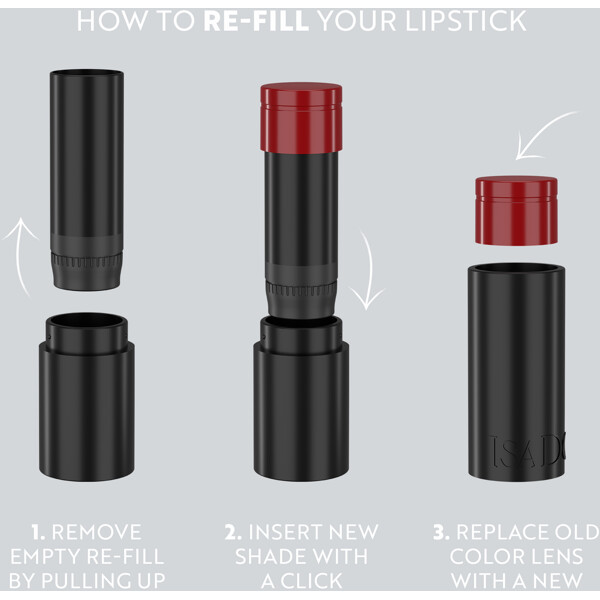 IsaDora The Perfect Moisture Lipstick Refill gir deg muligheten til å ta et bærekraftig valg for IsaDoras ikoniske, fuktighetsgivende leppestift. Det er rikt pigmentert og kremaktig formel som glir lett over leppene.