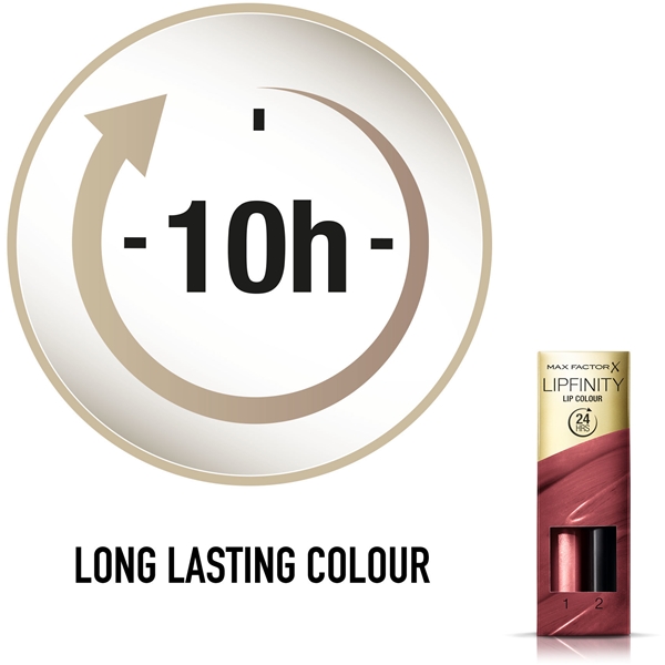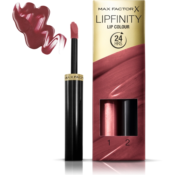 Make-up artister vet at det ikke er nødvendig med konstant påføring for å få perfekt farge på leppene. Utstyrt med Max Factors berømte Lipfinity, kan du få det glamourøse sluttresultat som du elsker uten å miste fargen. Hemmeligheten? Den smarte 2-trinns påføringen gir deg en holdbar farge og en glossy finish. Nå i lekkert etui. Den best bevarte backstagehemmeligheten fra Max Factor er nå offisiell!