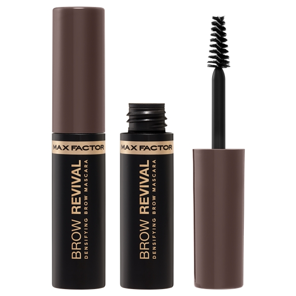 Brow Revival fra Max Factor er en brynemaskara med fibre for et fyldigere resultat som holder hele dagen. Inneholder fire myknende oljer: Maracujaolje, cameliaolje, arganolje og marulaolje. Minifiberbørste for smidig applisering som dekker vært strå.