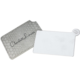 CL Beryl Pocket Mirror et praktisk lite skinnende metallspeil til vesken eller nødvendigheten. Saken fungerer også som en liten kortholder.