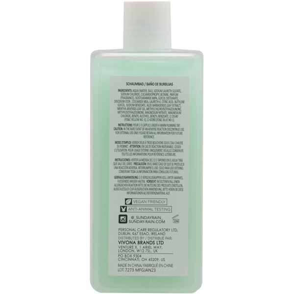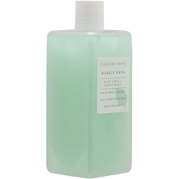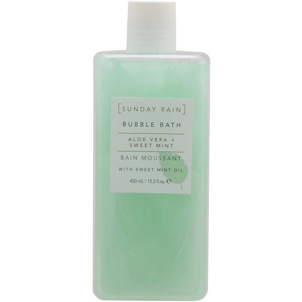 Søndag Regn Aloe & Sweet Mint Bubble Bath er et pleiende boblebad for en luksuriøs hjemme-SPA-opplevelse. Berolig og rens kropp og sinn med noen sjenerøse kapsler for å skape din luksuriøse badeopplevelse med duften av aloe vera & mynte.