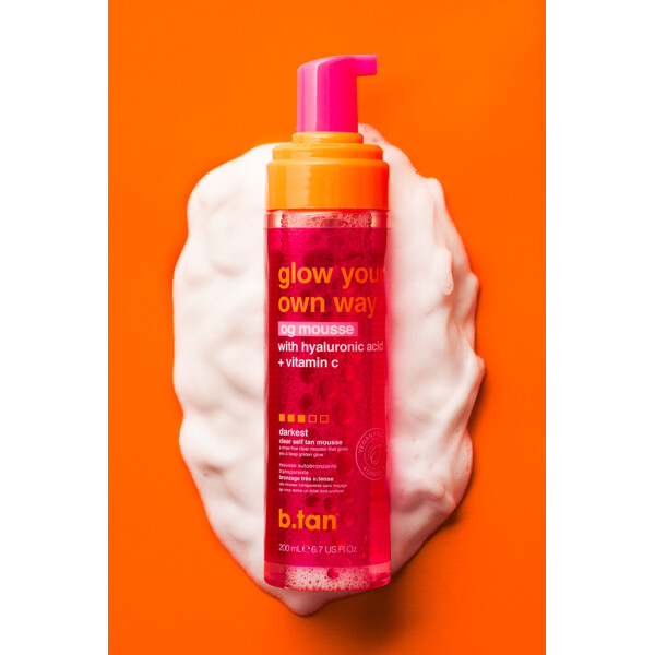 Glow Your Own Way The OG Glow Mousse Darkest fra b.tan gir en umiddelbar selvbruningseffekt. Påfør og få en enkel glød, ingen skylling kreves.