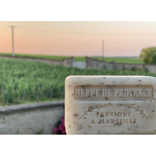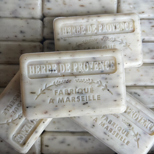 Sodium palmate, sodium palm kernelate, aqua, parfum, butyrospermum parkii, glycerin, sodium chloride, tetrasodium EDTA, tetrasodium etidronate, thymus vulgaris extract, thymus serpillum extract, origanum majorana herb extract, origanum flower/leaf/stem extract, rosmarinus officinalis extract, , ocimum basilicum flower/leaf/stem extract, artemisia dracunculus leaf/stem extract, salvia officinalis extract, anthriscus cerefolium extract, CI 58000, CI 99499, CI 12490