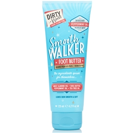 Dirty Works Smooth Walker Foot Butter er en intensivt nærende behandling for føtter med en fuktighetsgivende blanding av fuktighetsgivende søt mandelolje og sheasmør for å motvirke tørr og ru hud. Peppermynte- og tea tree-olje bidrar også til å styrke trøtte, ømme føtter og gjøre dem friske, myke og superglatte.