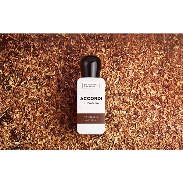 Accordi di Profumo er en innovativ samling av 8 forskjellige dufter, alle av eksepsjonell duftkvalitet. I hjertet av hver duft er et utvalg bærekraftige og ansvarlige ingredienser som garanterer sporbarhet og åpenhet om deres opprinnelse.Parfymene kan bæres individuelt eller kombineres i henhold til konseptet "lagpålegg", for å skape en tilpasset parfyme. "Accordi" som er det italienske ordet for accord brukes av parfymere og refererer til en "harmonisk kombinasjon av duftnoter".Sandalo AustraliaSandeltre høstes gjennom et samarbeid med aboriginske samfunn i Australias Kalaako-, Bullardoo- og Yilgam-regioner. De små treflisene dampdestilleres i et år for å skape en kraftig, kremaktig og myk duft med tydelige tretoner. En legende blant trenoter, og stammer fra antikken."Sandalo Australia er en duft på samme tid søt, full av varme og betryggende. Jeg oversatte denne følelsen med en kremaktig sandeltre og tonkabønne assosiert med de dype vibrasjonene til den haitiske vetiveren."Parfymøren Jordi Fernandez