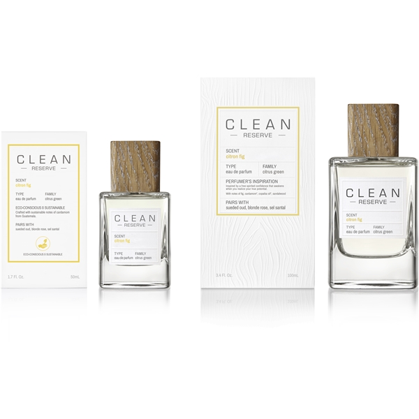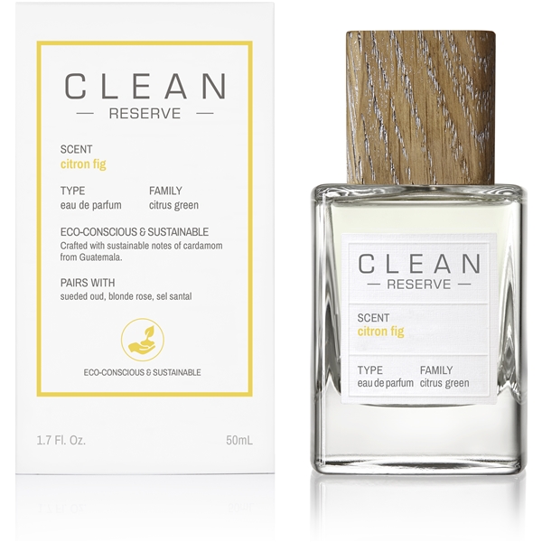 CLEAN RESERVE-kolleksjonen er laget med mennesker og planeten i tankene; duftene inneholder bærekraftige ingredienser som gir tilbake til bøndene og deres lokalsamfunn. Citron Fig EdP inneholder bærekraftig kardemomme fra Guatemala, for å gi økonomisk støtte til lokale bønder og deres lokalsamfunn og for å opprettholde naturreservatprogrammer.