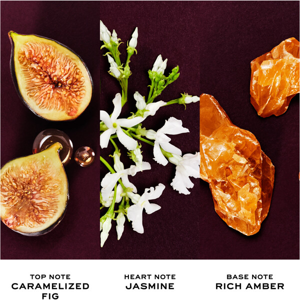 Duften åpner med en saftig akkord av karamellisert fiken, som møter et hjerte av blomstrende jasmin absolutt. Basen hviler på en varm amberakkord som gir duften dens fyldige dybde og langvarige intensitet.