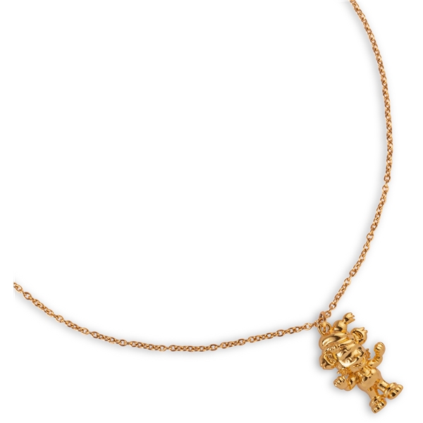 Et barnekjede med 18k gullbelegg og en 3D-bamsefigur hengende foran. Bamsefiguren er 20 mm høy og har 18k gullbelegg. Halskjedet er 36 cm langt og har en forlengelseskjede som er 3,5 cm.