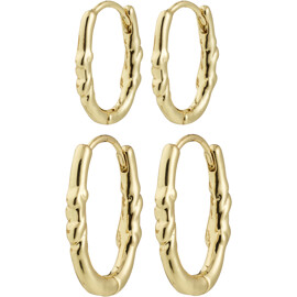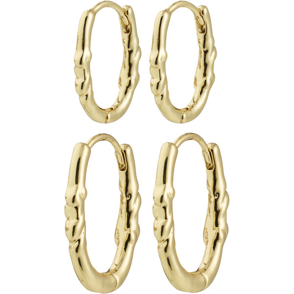 De gullbelagte SENSE-hoopsene fra Pilgrim gir deg et 2-i-1 sett med ovale hoops i en organisk formet design som skaper en perfekt miks av tekstur og glans. Designet med brukervennlige klikk-låser er de et must i din smykkesamling – perfekte både for solo bruk og stablet styling.