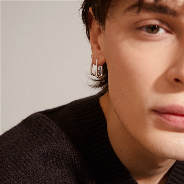 Gå urbant! Sølvbelagte, ovale bøyler med blank finish og brukervennlig klikklås. Det perfekte valget når utseendet ditt må være trendy med en ekte urban følelse. Et estetisk og stilig design som kan kles opp eller ned avhengig av anledningen.