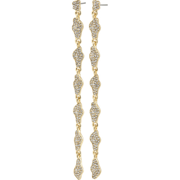 De gullbelagte BASIL-øredobbene fra Pilgrim er det ultimate statement-smykket for deg som elsker en eksklusiv, flytende silhuett med masse glans. De lange, organisk formede lenkene er dekorert med Preciosa-krystaller som fanger lyset fra alle vinkler og skaper et luksuriøst, dynamisk uttrykk.
