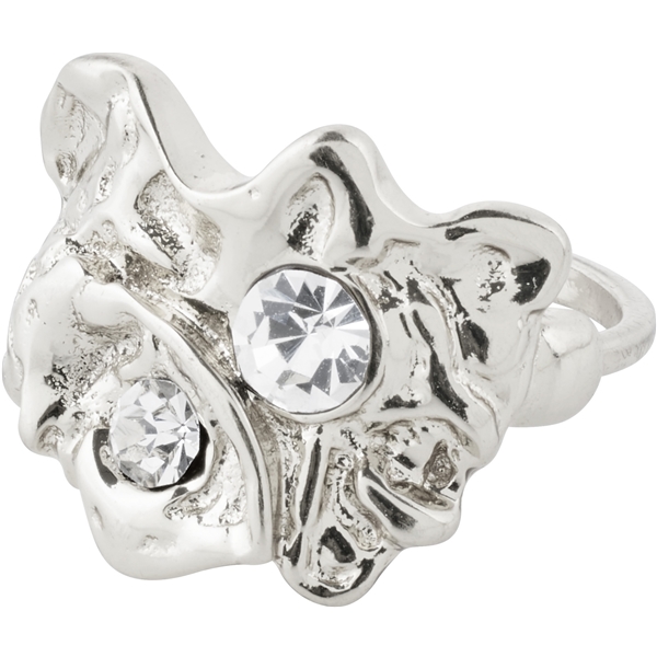 ENERGETIC Organic Shaped Crystal Ring fra Pilgrim er en sølvbelagt ring med store Preciosa-krystaller. Den er justerbar og har en uregelmessig struktur og håndlaget følelse, inspirert av naturens unike silhuetter