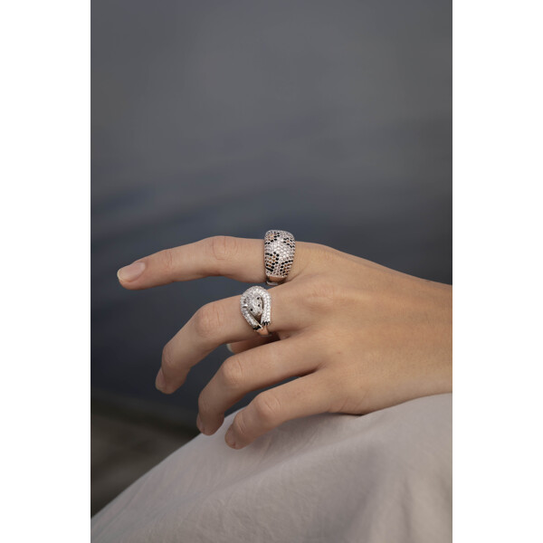 Sølvbelagt leopardring som er fylt med glitrende håndfattede Cubic Zirconia steiner.