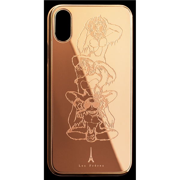 Les Fréres Rosé Monkeys iPhone Case er et luksuriøst mobilskall i rustfritt stål som beskytter din mobil. Skallet er en perfekt blanding mellom detaljrik og moderne som gir en luksuriøs følelse. Skallet er laget med electro plating og lasergravert logo og apetrykk. Mobilskallet passer til iPhone X og iPhone XS.