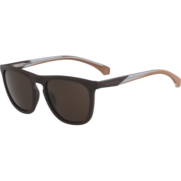Calvin Klein Jeans CKJ821S 256 Matte Bitter Brown er en klassisk modell på solbriller med stilige detaljer. Solbrillene har en buen i mattbrun og skalene er i oransje, gjennomsiktig og brun. Solbriller fra Calvin Klein Jeans har polarisert glass og 100% UV beskyttelse.